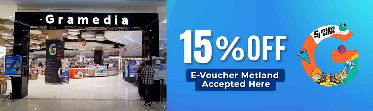 Dapatkan potongan harga 15% untuk semua buku penerbit Gramedia di Grand Metropolitan Bekasi tanpa minimum transaksi dengan menggunakan Metland Card *Syarat & ketentuan berlaku